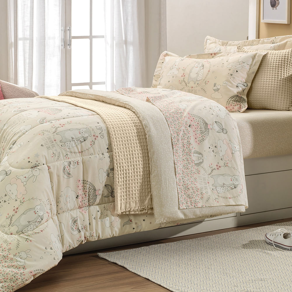 OJ ogo de Cama Infantil Solteiro 180 fios Percal 100% Algodão Lari Estampado lindo e confortável, perfeito para compor camas postas incríveis e te aquecer. Sua composição 100% algodão, conferindo toque suave, qualidade e beleza.