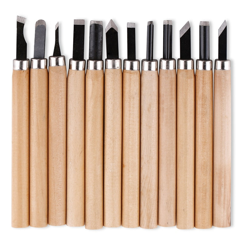 Conjunto com 12 ferramentas profissionais de esculpir de madeira.