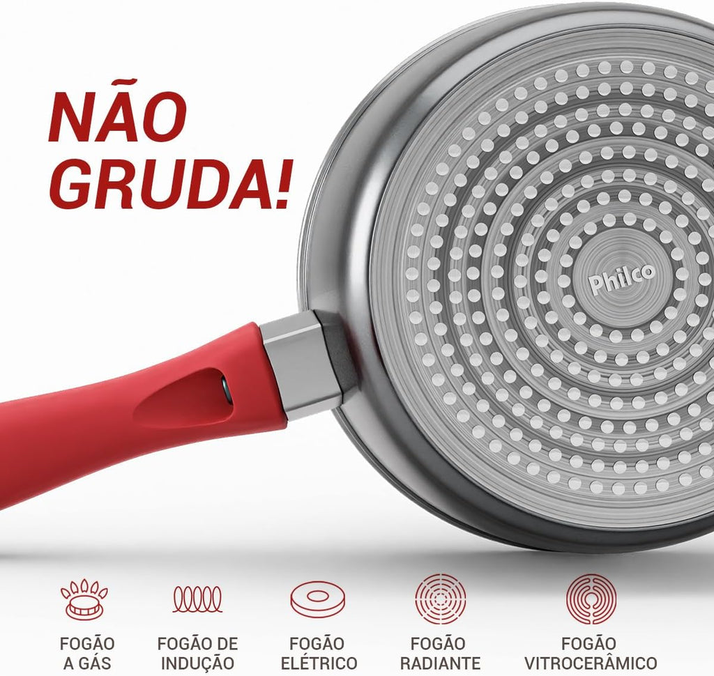 Inovadora, versátil e com tecnologia Redstone! Com a Panela Philco é possível preparar alimentos saudáveis sem precisar usar óleo, além de ser mais durável, atóxica e não pegar cheiro nem gosto das diferentes receitas! Tudo isso é possível graças ao seu revestimento Redstone que proporciona um alto poder antiaderente, permitindo que os alimentos deslizem facilmente e sem grudar nada. A espessura do fundo da panela é 4,5mm, distribui melhor o calor e de forma mais rápida, mantendo a temperatura por mais tempo. Além disso, a Panela Philco possui uma incrível capacidade de 1,4L. É o tamanho ideal para preparar diferentes quantidades de alimentos. Ela garante maior durabilidade, é atóxica e não pega cheiro nem gosto! Tudo isso é possível graças ao seu revestimento Redstone, que proporciona um alto poder antiaderente! Permite que os alimentos deslizem facilmente e sem grudar nada. Não se preocupe! A Panela Philco PPH160APR é compatível com todos os tipos de fogões e pode ser utilizada em queimadores elétricos a gás, radiante, indução e vitrocerâmicos.