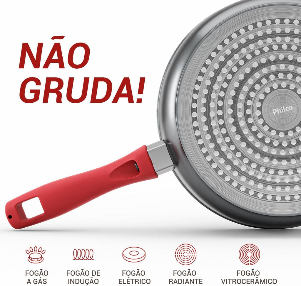 Se você busca qualidade, segurança e praticidade para cozinhar, conte com a Panela Philco PPH240APR com Tampa e Revestimento Redstone 2,7L. São 2,7 Litros de capacidade e fundo com 4,5mm de espessura que distribui melhor o calor e de forma mais rápida, mantendo a temperatura por mais tempo. A Panela Philco também possui cabo de baquelite com revestimento em borracha, mais seguro e resistente ao calor, e tampa de vidro que permite visualizar o preparo da receita e veda o calor dentro da panela, garantindo um cozimento mais rápido. Além disso, o revestimento antiaderente Redstone evita que os alimentos não grudem, além de facilitar a limpeza. Simples e prático! Panela Philco PPH240APR com Tampa e Revestimento Redstone é tudo o que você precisa para uma cozinha mais completa!